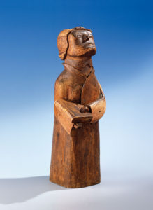 Fig. half dozen. The Preacher, Indiana, c. 1870. Butternut and white pine, acme 21 inches. Most American folk sculpture was made to serve a useful purpose, according to Cahill. But occasionally, he said, "i finds things… which were made simply for the pleasure of the making….In its simplicity of convention, and its combination of rough ability, intimacy, and intensity, [The Preacher] is one of the most striking examples of American folk sculpture." Colonial Williamsburg Collections from the Abby Aldrich Rockefeller Drove, gift of David Rockefeller.