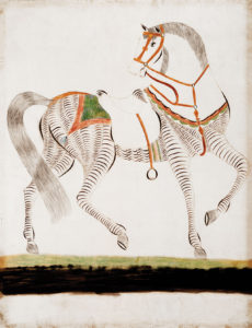 Fig. 9. Horse, Pennsylvania, c. 1850. Watercolor and ink on wove paper, 22 seven/8 by 17 5/8 inches. Cahill recollected that he acquired this cartoon in April 1931 from dealer Lillian Boschen in Freehold, New Bailiwick of jersey. "She showed me this beautiful equus caballus, in a lovely walnut frame," he said. "I took one look at information technology. A magnificent sort of penmanship cartoon, a drawing-primary'southward study, Pennsylvania Dutch." He bought information technology for for the American Folk Art Gallery, from which Edith Halpert sold it to Abby Rockefeller. Colonial Williamsburg Collections from the Abby Aldrich Rockefeller Collection, gift of David Rockefeller.